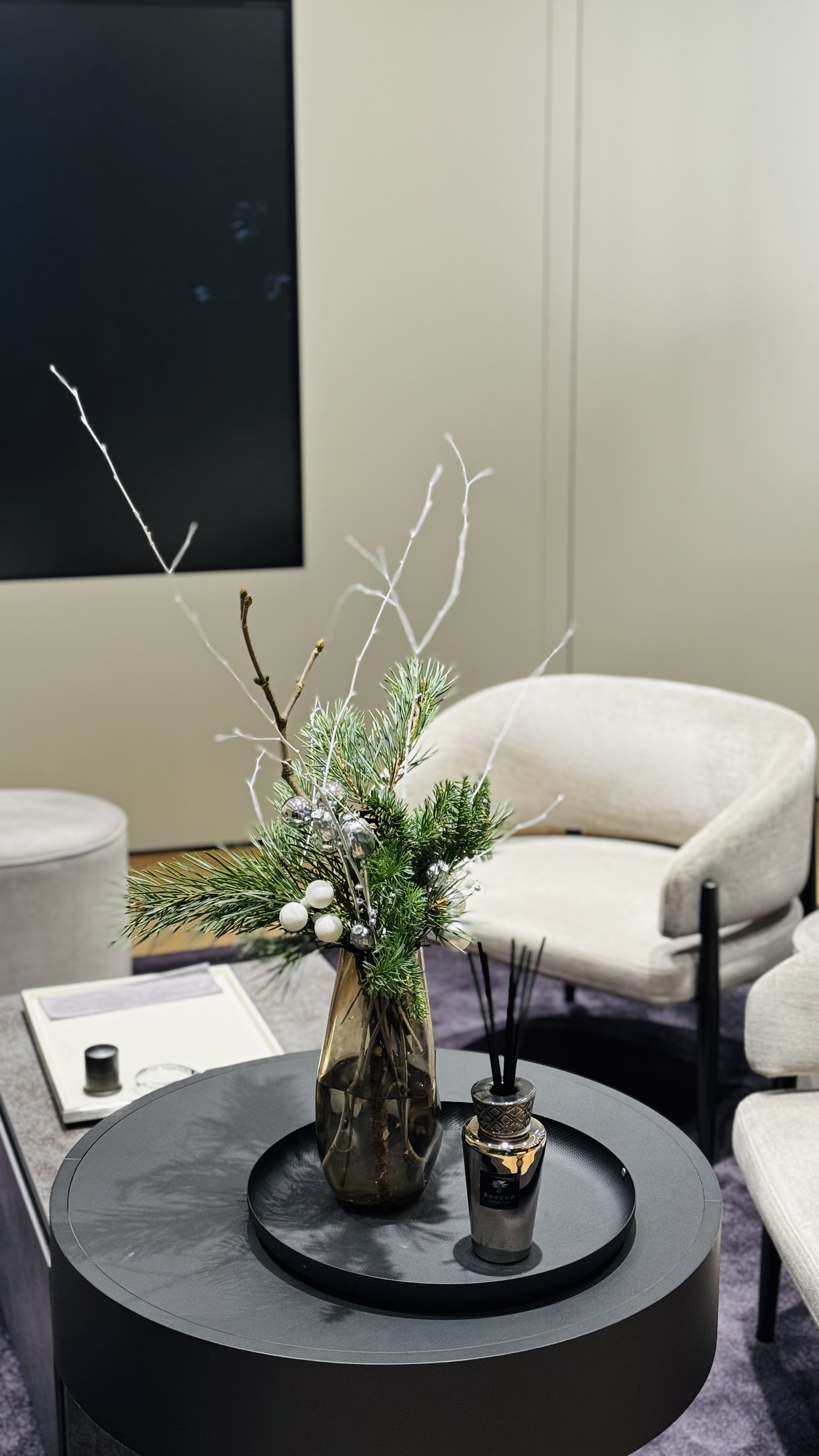 Inspired by the brand’s timeless elegance, a grand Christmas tree will stand at the heart of the boutique, accompanied by two decorated Advent wreaths, crafted in a palette of matte white and matte and shiny silver tones.